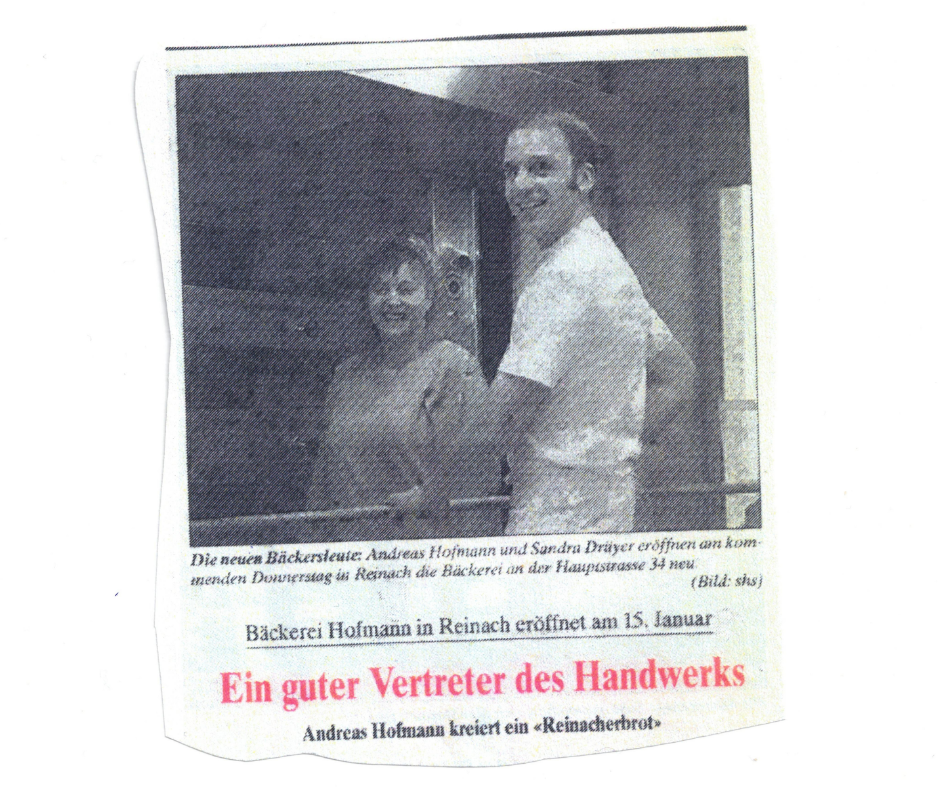 Herzlich willkommen bei der Bäckerei Hofmann – einem besonderen Ort, an dem Tradition, Liebe zum Handwerk und leidenschaftliche Hingabe seit Januar 1998 in jedem Stück Gebäck zum Ausdruck kommen. Gegründet von Andreas und Sandra Hofmann, ist unsere Bäckerei weit mehr als nur ein Geschäft: Sie ist ein wahrer Ort der Geborgenheit, wo frische, mit viel Herz und Sorgfalt selbstgemachte Köstlichkeiten auf Sie warten – mitten im Herzen von Reinach AG, direkt neben der ehemaligen Post. Schon damals, bei unserer Eröffnung, wurde uns in der lokalen Presse mit stolzen Worten bescheinigt: „Ein guter Vertreter des Handwerks“ – und genau das sind wir bis heute: eine Familie, die mit Freude und Wertschätzung für jedes Brot, jede Brötchen und jeden Kuchen sorgt, damit Sie jeden Tag mit einem Lächeln in den Tag starten können. Lassen Sie sich verführen vom Duft frisch gebackenen Brotes – er wärmt nicht nur die Nase, sondern auch das Herz.